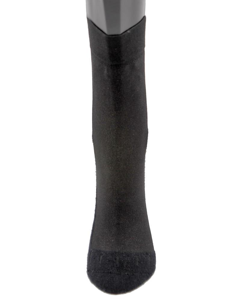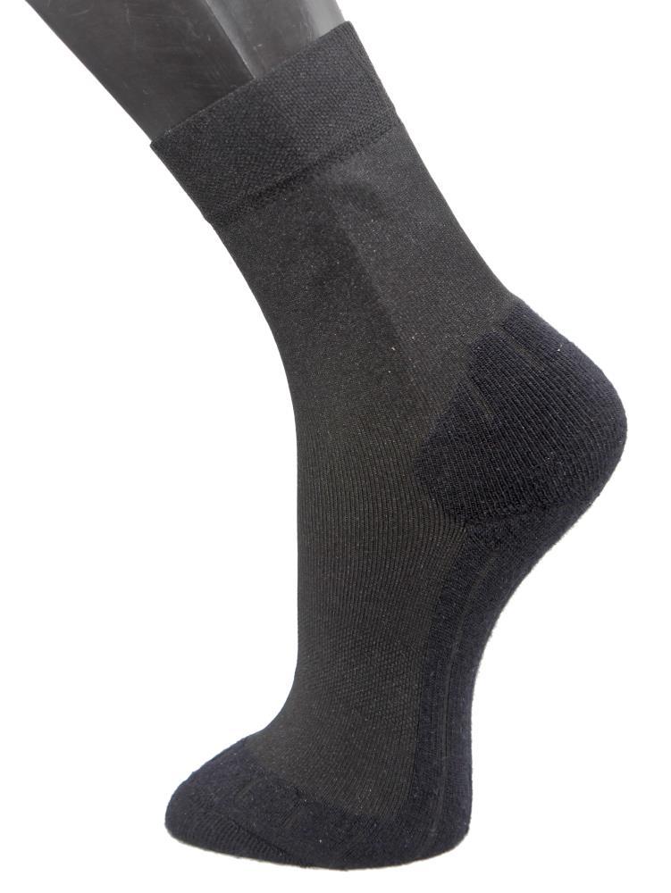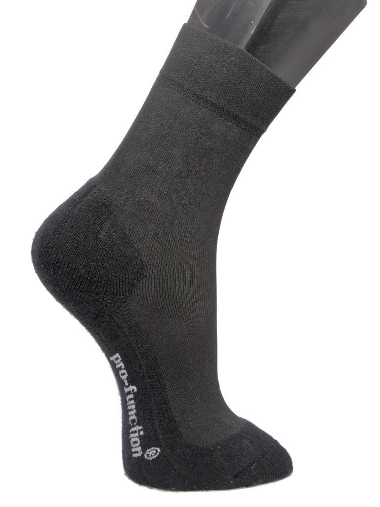 Optimale Luftzirkulation durch den Einsatz von Naturfasern aus Merinowolle und hightech Kunstfasen. Somit bleiben die Füße auch bei hoher Belastung angenehm kühl und trocken und bei kühleren Temperaturen angenehm warm. Keine Störenden Nähte. Fersen- und Sohlenbereich gepolstert für ein angenehmes Tragegefühl "wie auf Wolken".... Qualität: 32% PA Q-SKIN-Garn. Eine Polyamidfaser mit Silberionen, die Bakterienvermehrung nachhaltig reguliert. Die Q-SKIN®-Faser ist sehr angenehm auf der Haut, hohe Atmungsaktivität verleiht Frische und sorgt für Hygiene und Komfort. 24% Merinowolle, Merino ist temperaturregulierend d.h. kühlt im Sommer u. wärmt im Winter, bildet keine unangenhmen Gerüche, feuchtigkeitsregulierend 24% PAN (Acryl), 17% PA (Polyamid), 3% ELASTAN Farbe: SCHWARZ