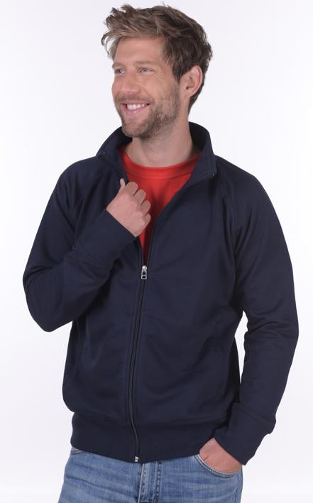 Sportliche und bequeme Fullzipp Sweatjacke mit Raglanärmeln - Reaktiv eingefärbt - Innen angeraut - mit hochwertigem Nylon YKK-Reißverschluss - Metallanhänger - Zwei praktische Einschubtaschen - Dekorative Flatlock-Nähte - Hochwertige Beleg- und Nackenspiegel- Ausführung - Rippbündchen Elasthan in Arm- und Saumbündchen - Formstabil und strapazierfähig Qualität: 60% Baumwolle, 40% Polyester gekämmtes Garn, ca. 320 g/m² Pflege: 60°C waschbar, Tumblergeeignet Erhältlich in den Größen von XS bis 6XL